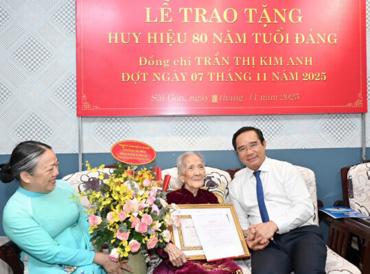 và trao tặng Huy hiệu 80 năm tuổi Đảng cho bà Trần Thị Kim Anh