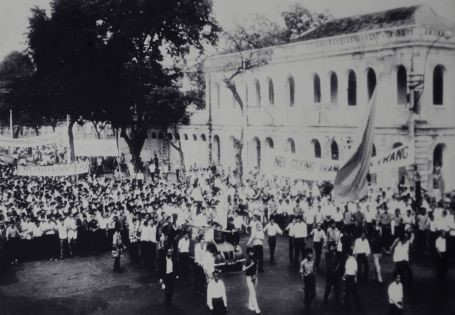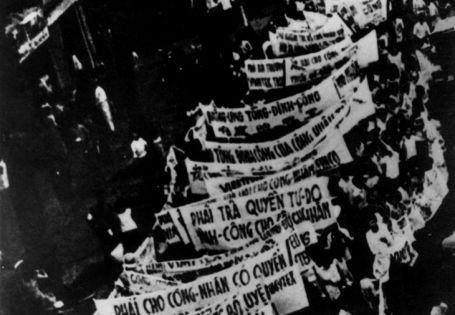 50 vạn công nhân Sài Gòn xuống đường biểu tình đòi chính quyền Việt Nam Cộng hòa thực thi dân chủ, tự do; đòi không cho Mỹ can thiệp vào Việt Nam ngày 23/8/1963.