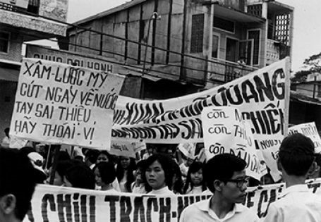 Sinh viên Sài Gòn xuống đường phản đối chống quân sự hóa học đường của chính quyền Nguyễn Văn Thiệu,