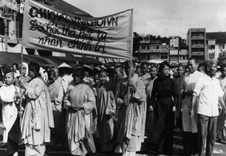 Đồng bào Phật tử miền Nam xuống đường biểu tình chống đế quốc Mỹ xâm lược, năm 1973.