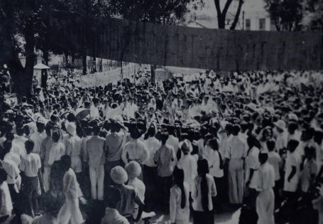 Học sinh Trường Trung học Petrus Ký tổng bãi khóa tham dự đám tang học sinh Trần Văn Ơn, năm 1950.