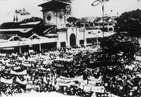 Nhân dân Sài Gòn biểu tình trước chợ Bến Thành ngày 19/3/1950