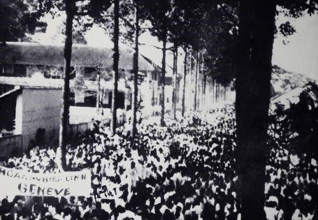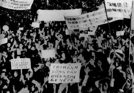 Nhân dân Sài Gòn mít tinh mừng sự kiện Hiệp định Giơnevơ được ký kết, năm 1954