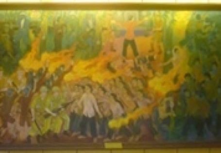 Tranh sơn dầu “Đấu tranh của công nhân cao su miền Đông Nam Bộ”