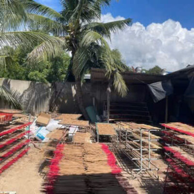 Quy trình trộn bột nhang và sản xuất nhang truyền thống. Ảnh: Tác giả