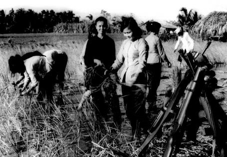 Đội nữ du kích Bình Khánh (Bến Tre) đang lao động sản xuất