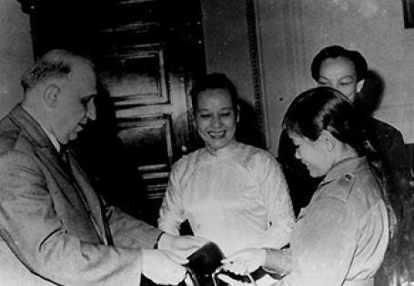Bà Nguyễn Thị Thập tại Hội nghị Liên đoàn Phụ nữ Dân chủ quốc tế tại Vienne, Áo năm 1955