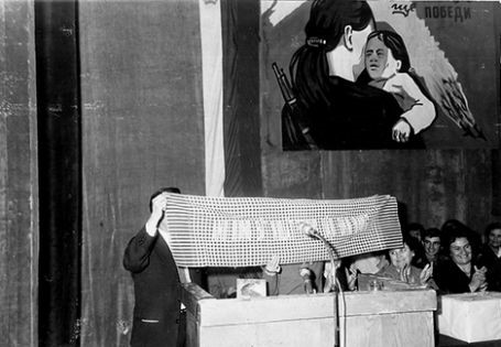 Bà Nguyễn Thị Thập đọc tham luận trong buổi kỷ niệm 50 năm Cách mạng Tháng 10 Nga tại Liên Xô (nay là nước Nga), năm 1967.