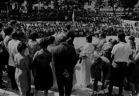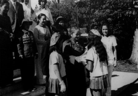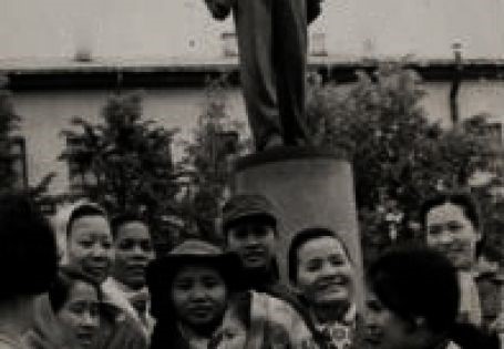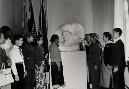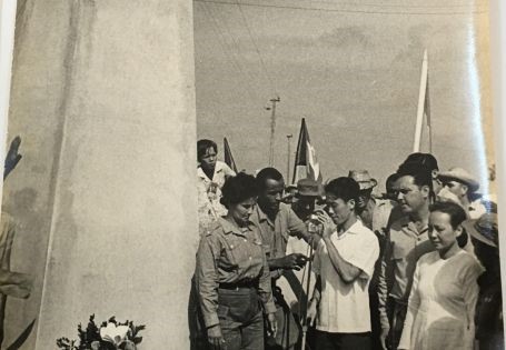 Đoàn phụ nữ miền Nam Việt Nam thăm thiếu nhi trường Nguyễn Văn Trỗi trước tượng đài liệt sĩ Nguyễn Văn Trỗi tại Cu Ba, ngày 23/7/1969