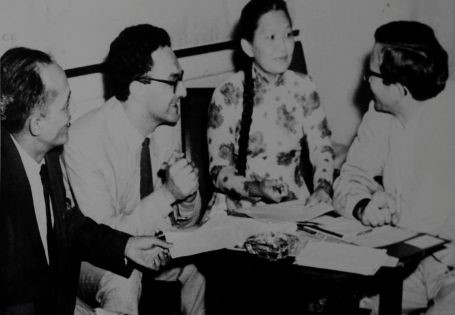 Bà Lê Thị Xuyến (người thứ 2 từ phải sang) tiếp đoàn Phụ nữ Dân chủ quốc tế tháng 4/ 1970.