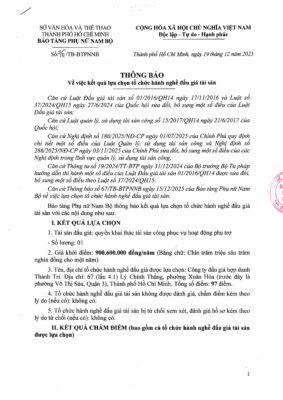 Hoạt động, Thông tin, Thông tin nổi bậtTHÔNG BÁO VỀ KẾT QUẢ LỰA CHỌN TỔ CHỨC HÀNH NGHỀ ĐẤU GIÁ TÀI SẢN
